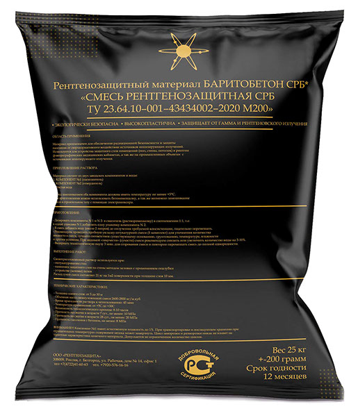 документы, подтверждающие качество и безопасность рентген-защитного строительного материала БАРИТОБЕТОН СРБ*