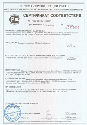 Наша продукция соответствует нормативам радиационной защиты, имеет сертификат соответствия и прошла испытания в аккредитованной лаборатории